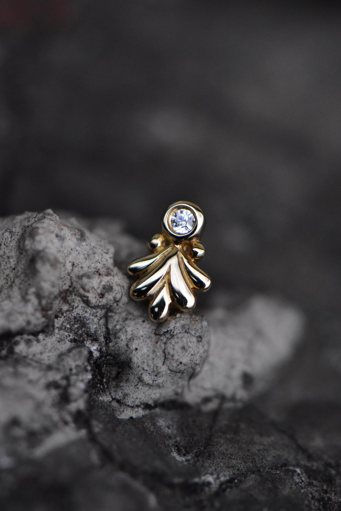 Yellow gold jewelry 14 kt. Stone: White Zircon. 5 mm. System: push pin, 14/16/18 gauge
